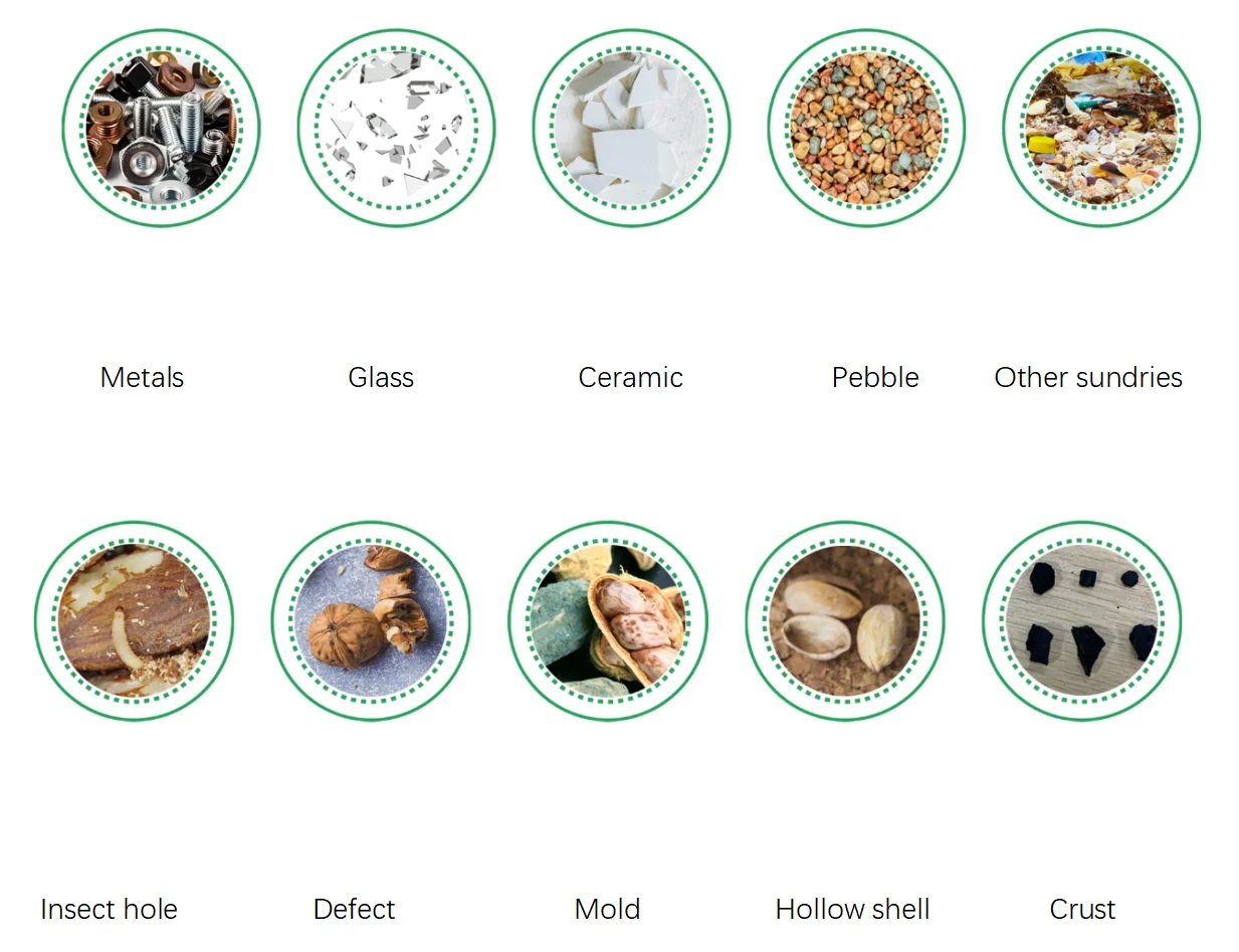 Fremdkörpererkennung: Erkennen Sie mögliche winzige metallische und nichtmetallische Fremdkörper in Schüttgütern. Dies umfasst unter anderem Glas, Kunststoff usw.